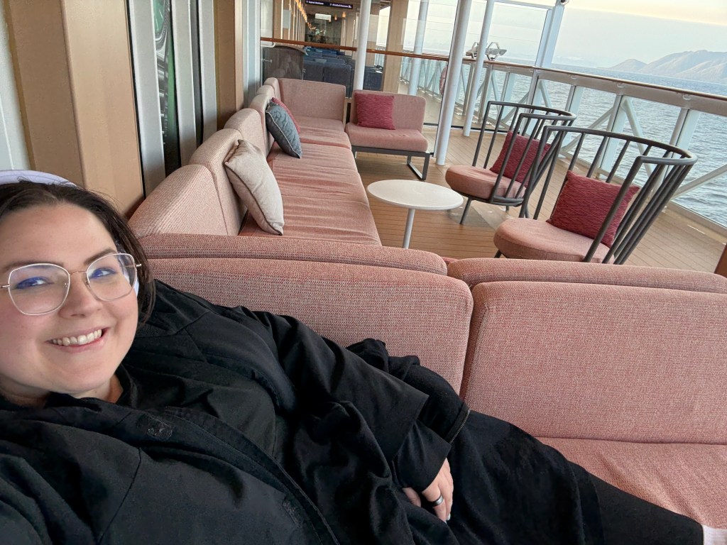 The only issue was that it often was below 50 degrees fahrenheit, meaning it was VERY cold for someone like me (Texan). My stateroom had no blanket and it wasn’t really something they offered on Deck 8. I wish I had thought to ask if there was a blanket I could use from my room steward, but I didn’t, which is totally my own fault. But, I will say, I wish my room had just come with one, so I could be outside, under a blanket, enjoying that space.